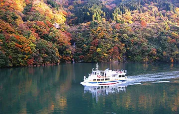 遊覧船からは庄川の清流と周囲の山々の美しい自然が見渡せ、四季折々に彩られる峡谷美もお楽しみいただけます。